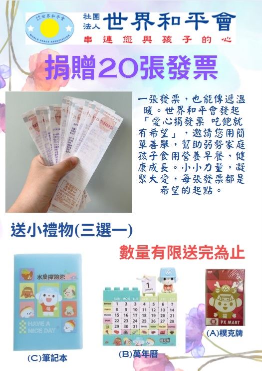 現場除社福及社區資源攤位之外,還有鬆筋保健協會的「舒筋活骨保健專區」,讓您鬆一下、更健康;「惜物分享市場」可說是挖寶天堂,讓好物找到新主人。世界和平會則發起「愛心捐發票 吃飽就有希望」,幫助家扶中心及弱勢家庭孩子食用營養早餐,健康成長,憑20張發票可至該攤位兌換精美小禮物。「萊姆醋DIY」歡迎大小朋友動手做,在酸甜滋味中,促進青銀世代的溫馨交流。