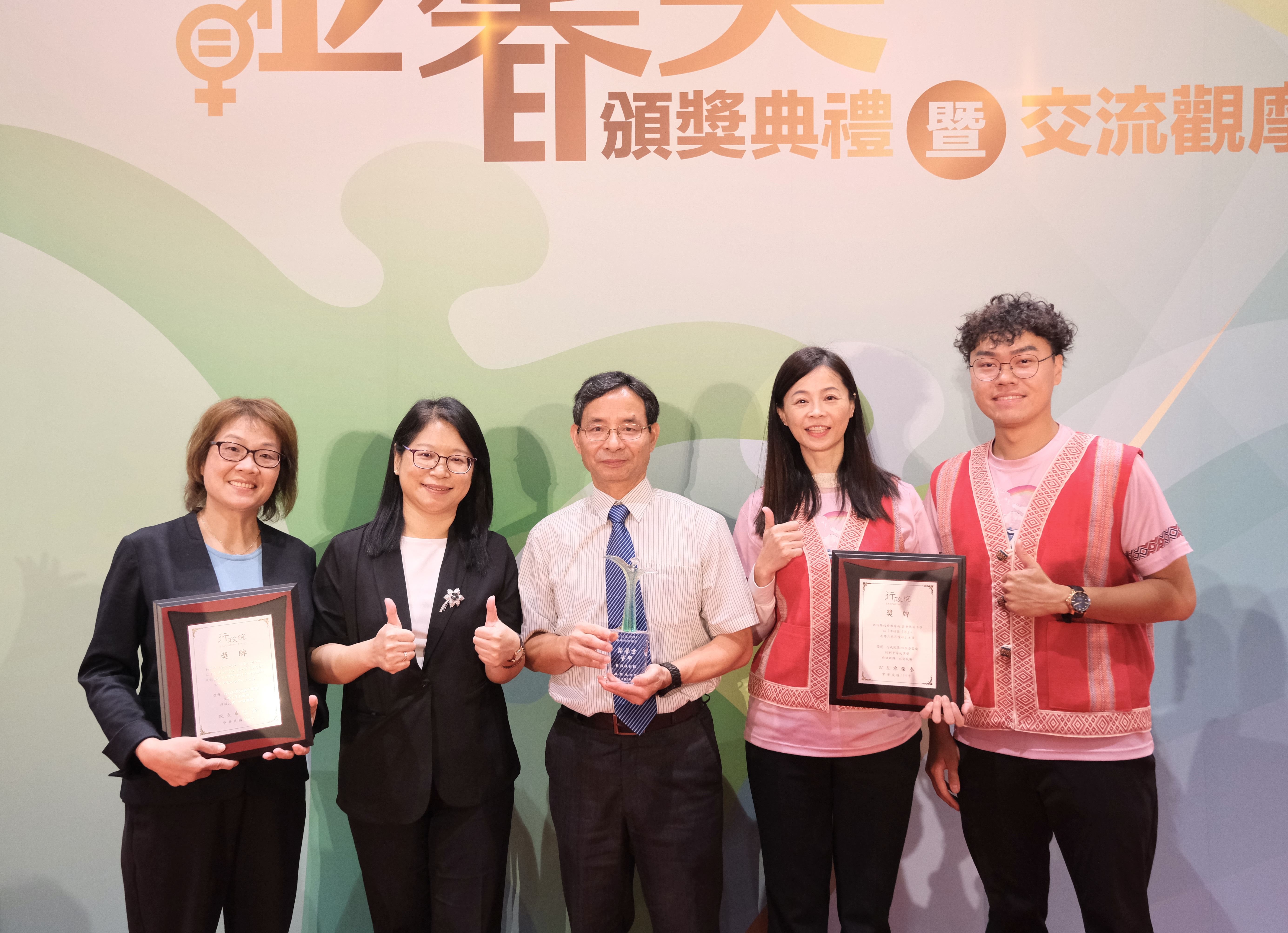 新竹縣政府近年積極推動性別平等政策,於「113年行政院推動性別平等業務輔導獎勵計畫」中表現優異,一舉榮獲「甲等」與「性別平等進步獎」,另提報的兩項特色方案更分別獲得「性別平等創新獎」與「性別平等故事獎」。新竹縣政府社會處副處長湯紹堂今(28日)代表縣府出席行政院第23屆金馨獎頒獎典禮接受表揚,感謝中央對縣府的雙重肯定,展現縣府在性別平權政策落實與創新推動上的豐碩成果。