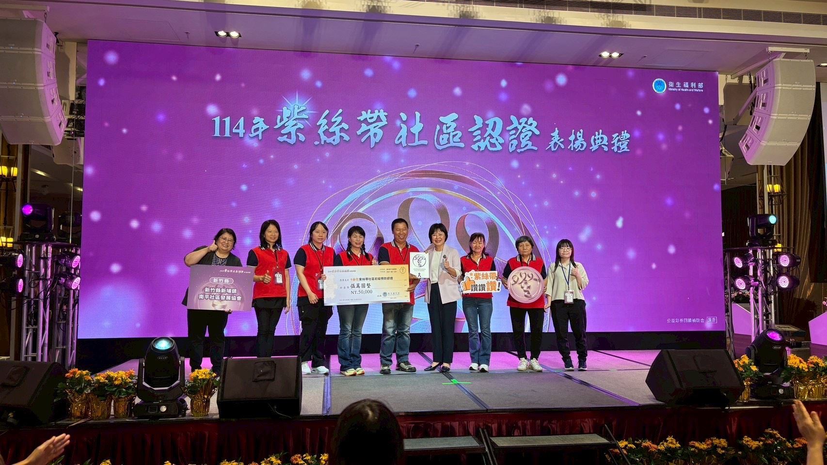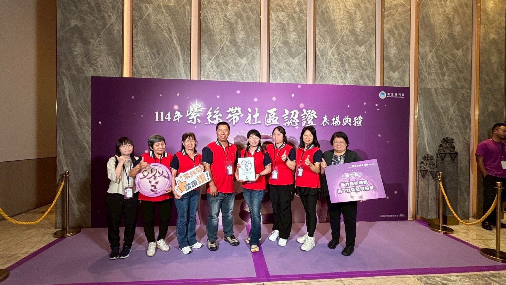 新竹縣政府於性別與家庭暴力防治上再獲佳績,衛生福利部昨、今(22日)兩天舉辦第1屆紫絲帶社區認證表揚典禮暨觀摩交流活動,新竹縣新埔鎮南平社區發展協會榮獲1朵紫絲帶認證。縣長楊文科表示,南平社區獲認證肯定,顯示縣府成功輔導在地社區,透過推動社區初級預防,讓防治意識扎根及建立正確防暴觀念。