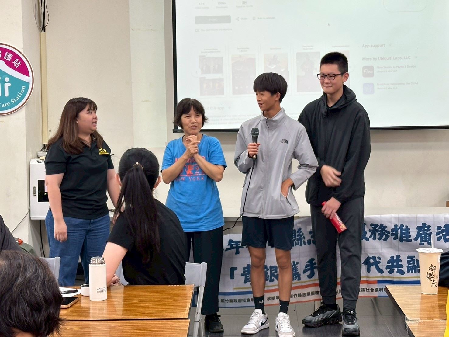 社會處表示,此次活動特別安排專業講師帶領芎林鄉上山社區發展協會 20 位高齡志工與16 位青年志工共同創作,第一堂課採混齡方式分成6組,以「長者在社區照顧關懷據點擔任志工的實務經驗」為創作元素,由長者及青年攜手設計短影音劇本,並共同參與演出。