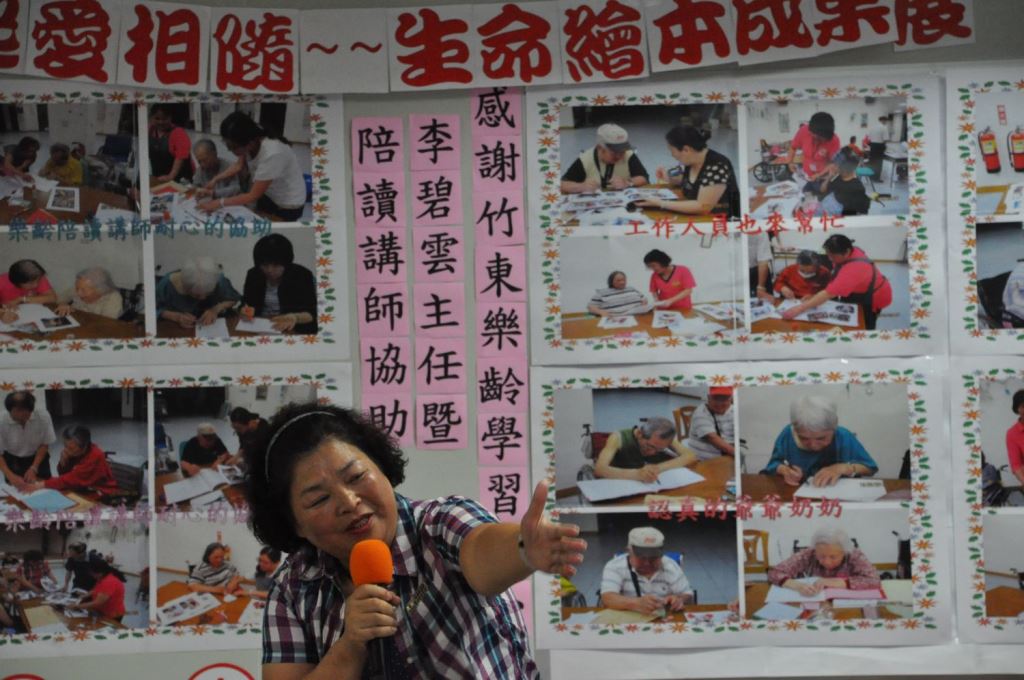 安養中心老人家的生活也可以更豐富、多元,不一定全然「冷冷」的臉孔與「沈沈」的氛圍,雖然確有老人家,持續不斷地在適應想回家又無法回家的無奈,竹東樂齡中心主任、竹東洗衫坑舞集團長李碧雲表示,讓他們的生活多一點樂趣的點子,在一個月前油然而生,她找來7位具有陪讀帶領人資格的講師,再找竹東長安養護中心的8位手腦較靈活的老人當助教,最後選定25位老人,展開一天2小時,連續10天共20小時的「生命繪本」製作。