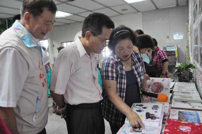 今天上午的「生命繪本」成果展,竹東鎮長徐兆璋、縣府秘書曾廷華、余素勤修女及多位社工都到場,為這群老人的傑作喝采,徐兆璋在誇讚之餘,還承諾要帶這群老人去踏青,讓老人們笑得更開懷。