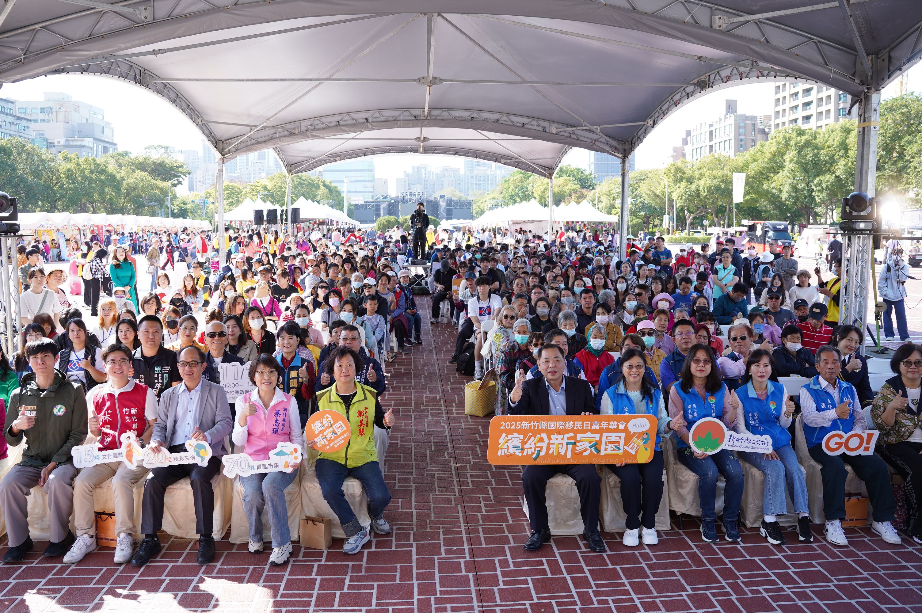 為響應「國際移民日」,展現新竹縣多元文化共融成果,新竹縣政府今(29)日在縣府前廣場舉辦「2025新竹縣國際新移民日嘉年華會」,吸引近千名縣民與新住民參與,場面熱鬧,宛如小型國際村。